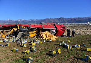 İstanbul’dan Erzurum’a iş makinesi ve madeni yağ taşıyan Nafi Aksu’nun (40) kullandığı 34 YL 9806 plakalı kamyon, D100 Karayolu Tepekışla Kavşağı’nda şarampole devrildi.
