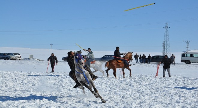 Kars’ta ata sporu cirit gösterisi nefesleri kesti. Soğuk havada yapılan gösteri atların feslerini dondurdu.