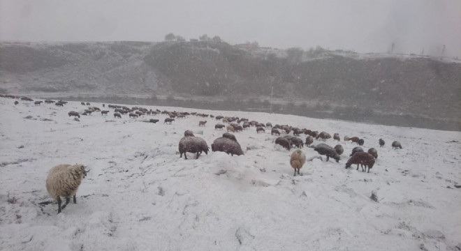 Kar yağışı çobanları zor durumda bıraktı