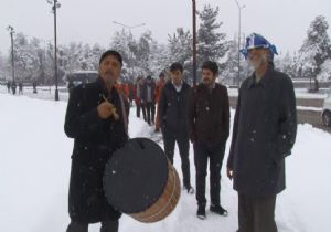 Erzurum’da gece saatlerinden itibaren etkisini gösteren kar yağışı şehri beyaz örtüyle kapladı. Güne karla uyanan bazı vatandaşlar ise, kar yağışını davul çalarak kutladı.