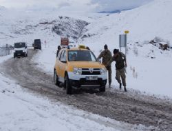 Kars’ın Kağızman ilçesinde Paslı geçidi mevkiinde yoğun kar yağışı ulaşımı engelledi, onlarca araç yolda mahsur kaldı.