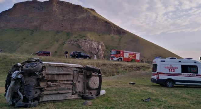 Erzurum’da kontrolden çıkarak 3 kez takla atan otomobilden sürücü burnu bile kanamadan çıktı.