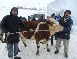 İl Gıda Tarım ve Hayvancılık Müdürlüğü’nce Karayazı ilçesi S.S.Karaağıl Köyü Tarımsal Kalkınma Kooperatifinin uygulamakta olduğu Kırsal Alanda Sosyal Destek Projesi kapsamında 57 aileye 4 baş toplam da 228 baş Simmental ırkı Süt Sığırcılığı projesi uygulama safhalarından biri olan gebe düve dağıtım zorlu kış şartları altında yapıldı.