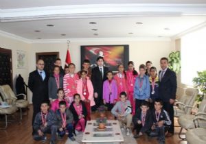 ERZURUM (İHA) - Karayazı Kaymakamı Hasan Dönmez, Erzurum’da okullar arası Atletizm yarışmasında 9 birincilik, 7 ikincilik, 7 üçüncülük madalyası kazanan öğrencileri makamında kabul etti.