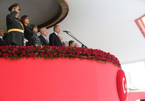 Cumhurbaşkanı Recep Tayyip Erdoğan, Atatürk Kültür Merkezi'nde düzenlenen Cumhuriyet Bayramı törenlerinde yaptığı konuşmada, "29 Ekim 1923'te kurduğumuz Türkiye Cumhuriyeti'nin 91. kuruluş coşkusunu ve heyecanını, en önemlisini de gurur ve iftiharını bugün 77 milyon hep birlikte idrak ediyoruz. 91 yıllık süreçte ülkemizi her anlamda büyütmek için yoğun bir mücadele verilmiş. Hamdolsun bu kutlu mücadelede çok önemli başarılar elde ettik. Türkiye Cumhuriyeti aziz milletimiz için olduğu kadar dünyanın mazlum ve mağdurları için de bir umut ışığı olarak doğmuştur. 91 yılın ardından geldiğimiz noktada ekonomisiyle göz kamaştıran, demokrasisi her geçen gün ileri standartlara kavuşan, milli birlik ve kardeşliğini her türlü engel ve saldırıya rağmen en güçlü şekilde yücelten bir cumhuriyetimiz var. Dahası kurulduğu ilk gün olduğu gibi bugün de dünyanın her yerindeki mazlumlar, mağdurlar ve muhtaçlar için yegane umut olma özelliğini en güçlü şekilde koruyan, umutlara karşılık bulmanın asil mücadelesini veren bir cumhuriyetimiz var. Kuruluşun 91. yıldönümünde bir kez daha altını kalın çizgilerle çizerek ifade etmek isterim ki, Türkiye Cumhuriyeti milletimizin ortak eseridir. Aynı şekilde Türkiye Cumhuriyeti cumhurun tamamının, yani istisnasız 77 milyonun cumhuriyetidir. 77 milyonun her bir ferdi bila istisna bu cumhuriyetin öz evladıdır, bu cumhuriyetin eşit derecede sahibidir. Rabbimize sonsuz şükürler olsun ki bugün ulaştığımız seviyede cumhuriyet, tüm etnik kökenlere, inançlara, kültürlere eşit mesafede duran bir yapıya kavuşmuş, yani kendi özüyle, ruhuyla, gerçek manasıyla yeniden buluşmuştur. Devlet ile millet, cumhur ile cumhuriyet bugün daha bir muhabbetle kucaklaşmış, eski acılar, kırgınlıklar, dargınlıklar tedavi ve telafi yoluna girmiştir. İşte bu dayanışma kardeşlik ruhuyla geleceği inşa etmeyi sürdüreceğiz" ifadelerini kullandı.
