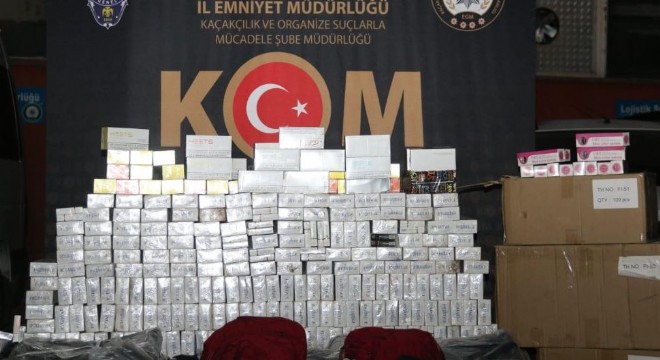 Ağrı İl Emniyet Müdürlüğü Kaçakçılık ve Organize Suçlarla Mücadele (KOM) Şube Müdürlüğüne bağlı ekipler, kargo firmaları aracılığı ile Batı illerine kaçak malzeme götürüleceği bilgisine ulaştı. Alınan bilgi üzerine harekete geçen ekipler, bahse konu aracı uygulama noktasında durdurdu. Burada savcılık kararı ile araçta yapılan aramalar sonucunda 5 bin paket kaçak sigara, 300 adet elektronik sigara tütünü, 400 adet faturasız markalı çanta, bin 500 adet faturasız oyuncak ile 290 adet Türkçe ibare olmayan Dermaroller ele geçirildi.