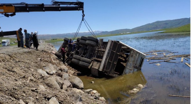 Karlıova ilçesinde bir kamyonun gölete devrilmesi sonucu 4 kişi yaralanırken, 150 koyundan çoğu telef oldu.