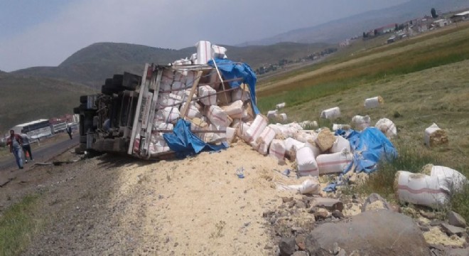 Karlıova yolunda kamyon devrildi: 1 yaralı
