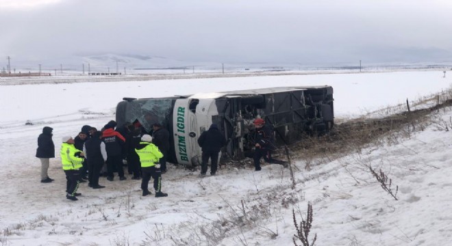 Edinilen bilgiye göre, İzmir’den Iğdır’da giden Bizim Iğdır firmasına ait 36 AAS 084 plakalı yolcu otobüsü, Selim ilçesi Oluklu köyü yakınlarında şoförünün direksiyon hakimiyetini kaybetmesi sonucu şarampole devrildi. Kazada yaralanan 23 yolcu, 112 ekiplerince hastaneye kaldırılarak tedavi altına alındı.