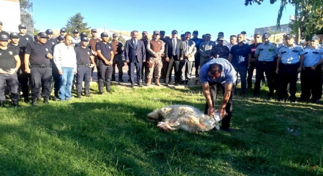 Emniyet Müdürlüğü Çevik Kuvvet Şube Müdürlüğü bahçesinde kaza, bela ve terör olaylarının defi için kurban kesildi.