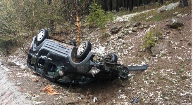 Kars'ın Sarıkamış ilçesinde sürücüsünün direksiyon hakimiyetini kaybettiği araç takla attı.