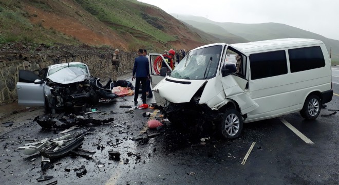 Kaza, dün sabah saatlerinde Bingöl-Erzurum karayolunda Çat ilçesi Parmaksız köyü yakınlarında meydana geldi. 34 SR 7769 plakalı otomobil ile 25 ED 535 panelvan tipi aracın kafa kafaya çarpıştığı kazada, 1'i çocuk 5 kişi hayatını kaybetti, 10 kişi de yaralandı.