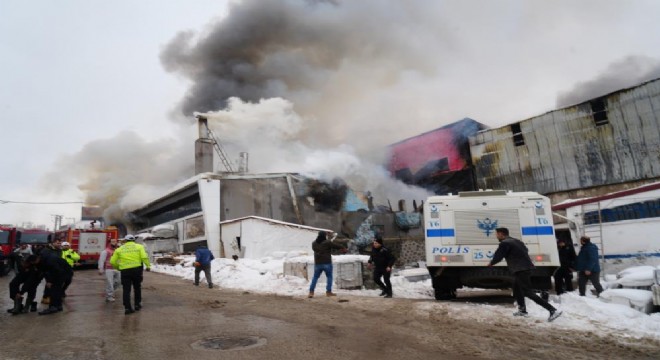 Erzurum’da Sanayi sitesinde çıkan yangına müdahale devam ederken içeride ...