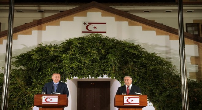 KKTC’ye düzenlediği resmi ziyaret kapsamında başkent Lefkoşa’ya gelen Cumhurbaşkanı Recep Tayyip Erdoğan, KKTC Cumhurbaşkanı Mustafa Akıncı ile ikili görüşme gerçekleştirdi. Görüşmenin ardından düzenlenen ortak basın toplantısında