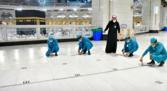 Kabe’de sosyal mesafe etiketleri çıkartıldı