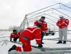 Taş, çadırların kurulması için Kızılay Kuzeydoğu Anadolu Lojistik ve Afet Müdahale Merkezi ile birlikte Ankara, Elazığ, Erzurum ve Sarıkamış Kızılay Şubesi'nden 40 kişilik teknik ekip ve personelin Yukarı Sarıkamış Şehitliği alandaki çalışmalarının sürdüğünü ifade etti.