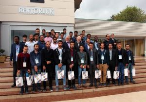 Ziyaret sonunda Rektör Koçak öğrencilere hediye takdim ederek hatıra fotoğrafı çektirdi.