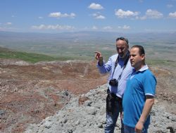 MUŞ (İHA) - Alparslan Üniversitesi (MŞÜ) Afet Araştırma Uygulama ve Yönetim Merkezi’nden Yrd. Doç. Dr. İskender Dölek, Vali Yardımcısı Fatih Demir ile Erzurum’un Hınıs ile Muş’un Varto ilçeleri sınırlarındaki Kongur mezrasındaki heyelan bölgesinde incelemelerde bulundu.