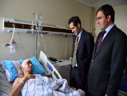 ERZURUM (İHA) - Seyyah Ulu Çınar’ın İzinde Projesi kapsamında Erzurum’a gelen Vanlı öğrenci Yusuf Aydın(21), merdivenlerden kayması sonucu düşerek beyin kanaması geçirdi. Genç öğrenciyi hastanede ziyaret eden Vali Yardımcısı Özgür Aslan ve Gençlik Hizmetleri ve Spor İl Müdürü Fatih Çintimar, Aydın’ın durumu hakkında doktorlardan bilgi aldılar.