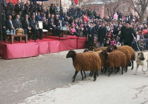 ERZURUM (İHA) - Erzurum’un Aşkale ilçesinin düşman işgalinden kurtuluşunun 96. yıldönümü kutlama töreninde, protokolün önünden koyunlar resmi geçiş yaptı.
