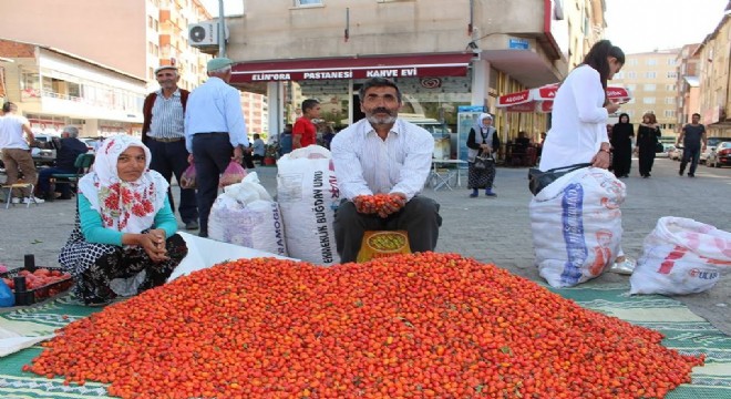 Oltu’nun yüksek kesimlerinde yetişen kuşburnu Oltu halk pazarında yerini aldı.