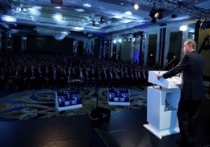 Konuşmasında Türkiye’de yaşanan gelişme ve büyümeye farklı sektörlerden ve örnekler veren ve istatistikler paylaşarak, “Unutmayın; kutlu doğumlar sancılı olur” hatırlatmasını yapan Cumhurbaşkanı Erdoğan, şunları söyledi: “2015’te Türkiye’nin tökezleyeceğini umanların, bir kez daha hüsrana uğradığına inanıyorum. Biliyorsunuz ben, uzun yıllardır uluslararası değerlendirme kuruluşlarının Türkiye’ye verdikleri notlara, ülkemizle ilgili değerlendirmelerine hep itiraz etmişimdir. Bu değerlendirmelerin bir kısmı art niyetli olmakla birlikte, bir kısmı da Türkiye’yi yeteri kadar tanımamanın bir sonucudur. Uluslararası bu tür kuruluşların kararları, açıklamaları bilimsel değildir, siyasidir, bunu da biliniz. Türkiye, tıpkı bir buzdağı gibi, gözükmeyen gücü görünen gücünden çok büyük olan bir ülkedir.”