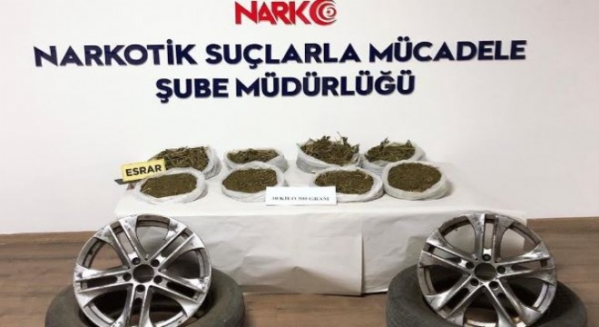 Edinilen bilgiye göre, Malatya Emniyet Müdürlüğü Narkotik Suçlarla Mücadele Şube Müdürlüğü ekiplerince şüpheli bir araçta arama yapıldı. Yapılan aramada arka lastiklere saklanmış vaziyette, 10 kilo 230 gram kubar esrar ele geçirildi.