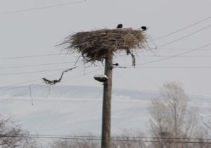 ERZURUM (İHA) - Kış aylarının başlarında Erzurum’dan sıcak bölgelere göç etmeye başlayan leyleklerin yuvaları kargalara kaldı.