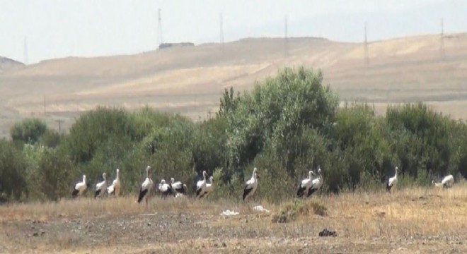 Başka illerden gelerek Kars üzerinde sıcak memleketlere göç eden onlarca leylek mola vermek üzere Kars Çayı’nın geçtiği Dikme köyü merasına indi. Sıcak havadan etkilenen ve yere inen onlarca leylek cep telefonuyla anbean kaydedildi.