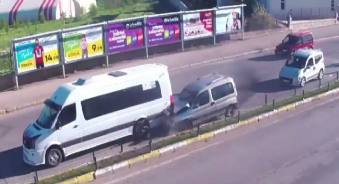 Kaza anlarının saniye saniye kaydedildiği olayda şans eseri yaralanan olmazken araçlarda maddi hasar oluştu.