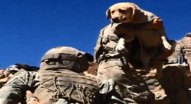 Türk Silahlı Kuvvetleri (TSK), sosyal paylaşım sitelerindeki hesaplarından "Onlar Mehmetçiğin can dostu! Mayın arama köpeği 'Yay' İkiyakalar’da komandolarla" başlığıyla video paylaştı.