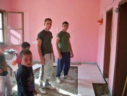 Van'da, Mehmetçik ile Özalp Milli Eğitim Müdürlüğü tarafından yürütülen 'El ele gönül gönüle' projesi kapsamında okulların onarımı yapıyor.