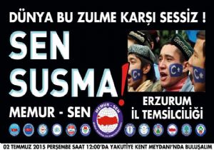 Memur Sendikası Erzurum İl Temsilciliği, Doğu Türkistan’da ki Türk soydaşlarımıza uygulanan şiddet ve mezalime karşı protesto gerçekleştirecek.