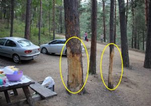Ateş yakmak ya da çıra ihtiyaçlarını karşılamak için kendini bilmez kişiler, çam ağaçlarının gövdelerine büyük zarar verirken ağaçların bu durumuna büyük tepki gösteren doğa severler, “Bu güzelim ağaçlara yapılanların insanlıkla ilgisi yok. Bunu doğadaki vahşi hayvanlar yapmıyor. Ağaçlara böylesine zarar verenler hayvanlardan da öte mahlûklar. Yazık günahtır. Bir çam ağacının bu seviyeye gelebilmesi 30-40 yıl alıyor. Ağaçlara bu tür zarar verenlerin tespit edilmeleri ve en ağır cezayı almaları gerekir.” şeklinde tepkilerini dile getirerek herkesi daha doğaya karşı daha duyarlı olmaya davet ettiler.