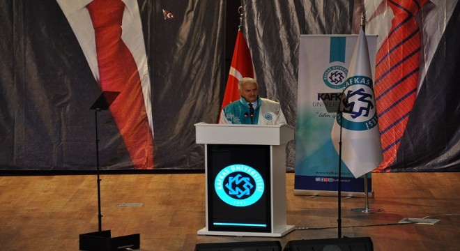 TBMM Başkanı Binali Yıldırım, “Kafkas üniversitemizin 2018-2019 akademik öğrenim yılı açılış törenini gerçekleştiriyoruz. Ayrıca Üniversite senatosu tarafından şahsıma tevcih edilen fahri doktora için rektörümüze senato üyelerimize ve emeği geçen bütün arkadaşlarım teşekkür ediyorum. Üniversitemize ve şehrimize değer katan çalışmaları sebebiyle değerli çalışma arkadaşım önceki dönem Ulaştırma Bakanımız Ahmet Arslan, değerli komisyon başkanım ve bu üniversitemizin ilk öğrencisi olmuş yunus hocama emeklerinden dolayı teşekkür ediyorum” dedi.