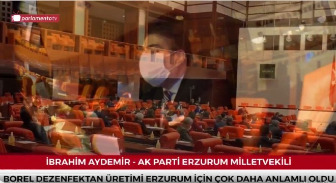Corona-19’la mücadele sürecinde krizin fırsata çevrilmesi esasında önemli gelişmeler yaşandığına dikkat çeken Milletvekili Aydemir, ‘Enerji Bakanımız Sayın Fatih Dönmez'in son açıklaması bu şaşmaz gerçeği zihnimize çağırdı: "Yerli ve millî bor katkılı el dezenfektanımız BOREL seri üretimde" diyor ve devam ediyor: "BOREL haftaya raflardaki yerine alacak. Covid-19'la mücadelemizde bütün kurumlarımızla milletimizin hizmetindeyiz, yanındayız." Biz de farklı vesilelerle kayda geçmiştir ki Erzurum'da bilim adamları insanı fiziki yapısı için borun gerekliliğini ortaya koyan çalışmalar yaptılar ve eklemiştik: "Bor içeren nano malzemelerin kanser tedavisinde etkin olması bunlardan biri." diye. İşte bu yüzdendir ki dezenfektan BOREL üretimi bizim için çok daha anlamlı oldu. Bakanlığımıza müteşekkiriz.’ diye konuştu.
