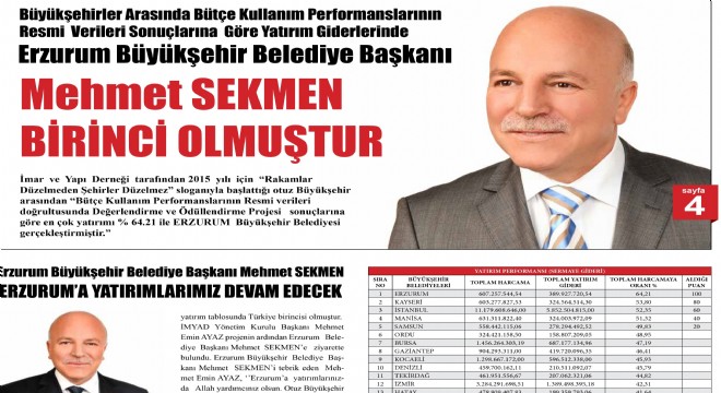 Büyükşehir Belediye Başkanı Mehmet Sekmen, yatırım bütçesi kullanım performanslarının ...