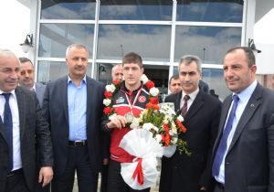 Milli güreşçiye coşkulu karşılama
