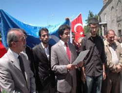 Lalapaşa Camii’nde kılınan Cuma Namazı’nın ardından Erzurum Ülkü Ocakları İl Başkanvekili Sinan Demir tarafından bir basın açıklaması yapıldı. Açıklamasında, yıllardır Doğu Türkistan'da yaşanan menfur hadiseler neticesinde yüz binlerce Uygur Türk'ünün katledildiğini söyleyen Demir, Uygur Türklerinin, zulmün ve esaretin pençesinde nice evladını yitirmiş ve yitirmeye de devam ettiğini kaydetti.