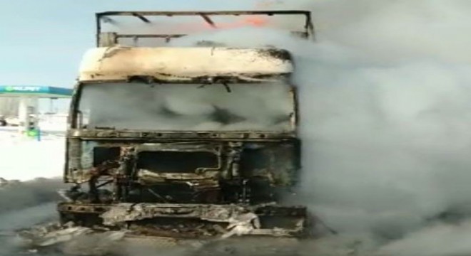 Sivas'tan Erzurum istikametine giden Gökhan Kuru idaresindeki 38 ZY 689 kupa ve 38 JA 912 dorse plakalı, mobilya ve çelik kapı yüklü tır, İmranlı ilçe merkezine 1 kilometre kala henüz bilinmeyen bir nedenle alev aldı.