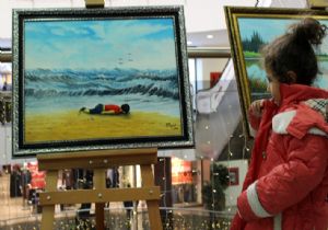 Aylan bebeği resmeden Fesih Özyurt, "Mültecilerin sorunu dünya gündemine, Aylan bebeğin cesedinin bulunması ve o anki fotoğrafla geldi. Çok acı bir tablo. Bundan etkilenerek bu fotoğraf resmettim" dedi.