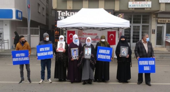 Muş’ta çocuklarının terör örgütü PKK tarafından dağa kaçırılmasından HDP'yi sorumlu tutan anneler, dondurucu soğuğa rağmen parti önünde eylemlerine devam etti.