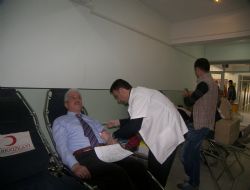 Erzurum Kızılay kan merkezinden gelen bir doktor üç hemşire ve bir şoför olmak üzere 5 kişilik gezici kan toplama ekibi okul içinde kurdukları seyyar sedyeler üzerinde okul da bulunan öğrenci ve okul personelinden kan aldı