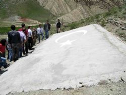 Boş zamanlarını değerlendirmek ve ilçeye kalıcı bir eser bırakmak amacıyla böyle bir çalışma içerisine girdiklerini söyleyen öğrenciler, “İnşaat aşamasında bayağı yapacağımız yerin yüksek ve yamaç olması nedeniyle inşaat malzemelerini taşımakta zorluk çektik. Fakat yaptığımız eserin milletimizin birliğini temsil eden Türk Bayrağı olması çektiğimiz zahmetleri unutturdu” diye konuştular.