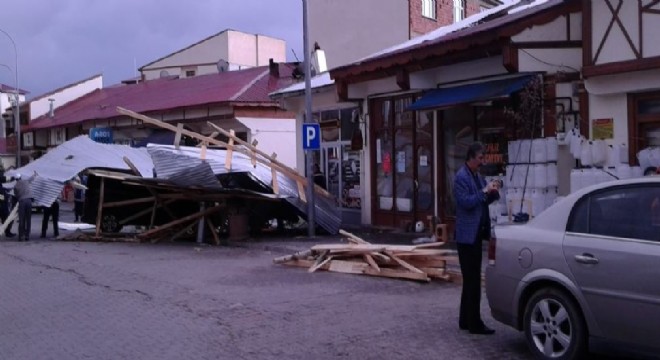 Narman ilçesinde 10 dakika etkili olan fırtına çatıları uçurdu.
