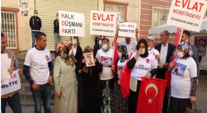 Çocuklarının terör örgütü PKK mensupları tarafından dağa kaçırıldığı iddiasıyla HDP Diyarbakır İl Başkanlığı önünde başlatılan evlat nöbeti eylemine bir aile daha katıldı.