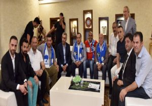 Büyükşehir Belediye Erzurumspor’un yeni transferi Mert Nobre, Erzurum Büyükşehir Belediye Başkanı Mehmet Sekmen’i ziyaret etti. Şehre iner inmez ayağının tozuyla Büyükşehir Belediye Erzurumspor Kulüp Başkanı Avukat Ali Demirhan, takım arkadaşları ve kulübün yönetimiyle birlikte Başkan Sekmen ile görüşen ünlü futbolcu Nobre, ziyarette önemli mesajlar verdi. Erzurumsporlu Mert Nobre, “Bura benim ülkem. Benim vatanım. Ben Türkiye’yi seviyorum. Tekrar Türkiye’de olmaktan çok mutluyum. Bize destek verdiğiniz için çok teşekkür ediyorum. Bizim işimizde destek çok önemli. Şampiyon olmak sadece benim hedefim değil, şampiyon olmak şehrin de hedefidir. İnşallah şampiyon olup bir üst lige çıkacağız” dedi. Başkan Mehmet Sekmen de, “Türk sporuna uzun süre hizmet vermiş ve halen de hizmet vermekte olan Mert Nobre kardeşim Erzurum’a hoş geldin. Erzurum camiamıza bu transfer hayırlı uğurlu olsun. İnanıyorum ki Erzurumspor bu sene Türkiye liglerinde, spor kamuoyunda, spor sayfalarında önemli bir yer edinecektir. Biz de Erzurum camiası olarak, Erzurum Büyükşehir Belediyesi olarak her zaman Erzurumspor’un yanında yer alacağız ve inşallah arzu ettiğimiz hedefi hep beraber yakalayacağız. Allah utandırmasın. Kulüp başkanımıza, yöneticilere teşekkür ediyorum” dedi.
