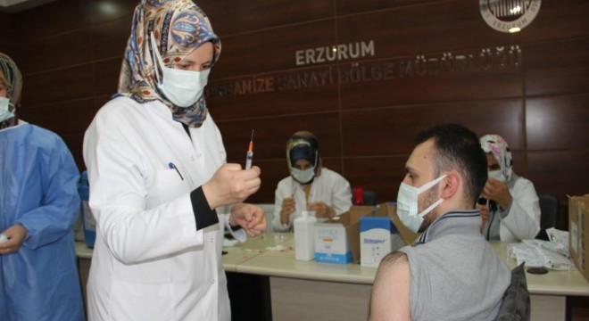 Sağlık Bakanı Dr. Fahrettin Koca’nın, OSB’lerde yerinde aşı uygulamasının başladığını duyurmasının ardından Erzurum 1. Organize Sanayi Bölgesindeki fabrikalarda çalışanlara Covid-19 aşısı yapılmaya başlandı.