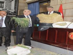 paralarının acilen ödenmesi, Ziraat Bankası veya Tarım ve Kredi Kooperatifleri'ne olan kredi borçlarının ise 1 yıl ertelenmesi gerektiğini ifade eden Öğüt, Ardahan'dan gönderilen ve yağıştan olumsuz etkilenen arpa, saman ve hayvan yemini basın toplantısı salonunda sergiledi. Öğüt, Ardahan'da çekilen fotoğrafları da basın mensuplarına gösterdi.