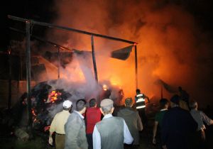 Oltu ilçesine bağlı Bahçecik köyünde çıkan yangında iki samanlık kül oldu.